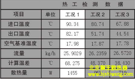 舉例:工況1:進水溫度90.34度,出水溫度82.17°,室內溫度18°,參數計算值68,得出來的散熱量1455(瓦)。