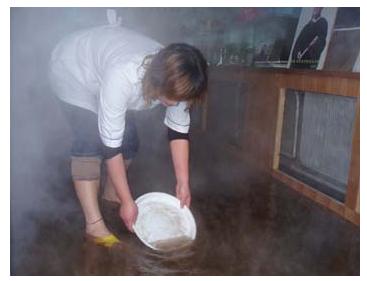 原來是吳大爺家的暖氣片發生了爆裂,暖氣片裏的水像決堤的洪水一般湧出來,淹沒了地板,淋濕了電視機和機頂盒,吃的用的全都被暖氣片裏的水糟蹋的不成樣子。